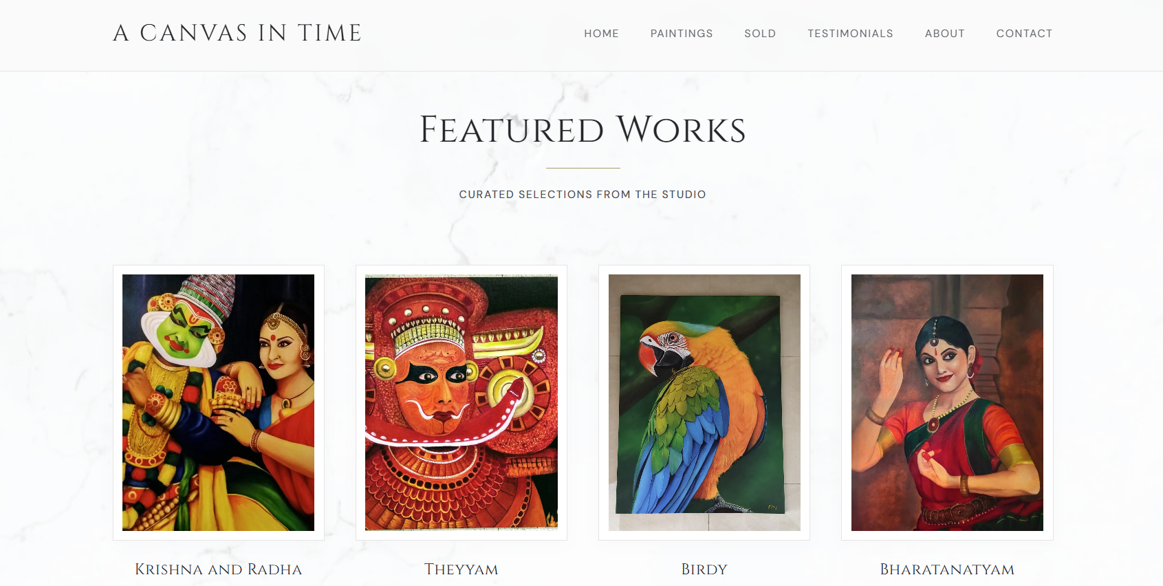 An art gallery and e-commerce platform built for a working artist. Browse paintings, view sold works, request commissions, and purchase directly online.